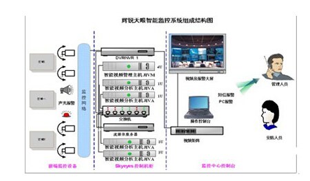 智能視頻監(jiān)控系統(tǒng)總體由前端監(jiān)控設(shè)備、智能視頻處理中心、報警管理中心三部分組成。