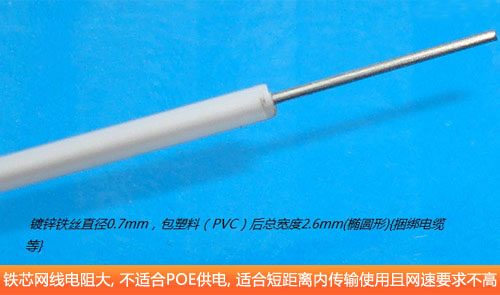 此類網(wǎng)線在鐵線外面電鍍了一層銅,因?yàn)橼吥w效應(yīng),對(duì)鐵線的導(dǎo)電能力有一定提升。但是此類線不適合POE供電,因?yàn)殡娮栎^大。