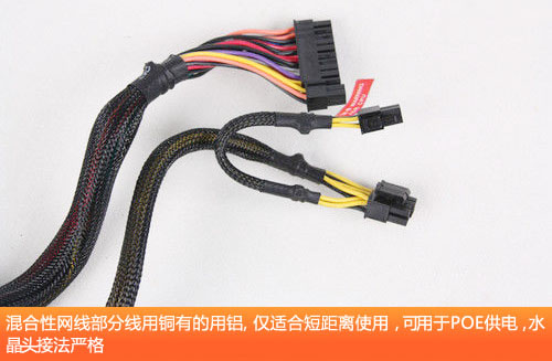 此類網(wǎng)線里面部分線使用銅部分線使用鋁,僅適合短距離使用,可用于POE供電,但是制作水晶頭的時(shí)候必須嚴(yán)格按照線序制作,否則銅線不能被用于供電,將增大電阻,影響供電效果。
