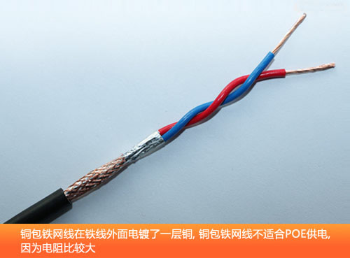 此類網(wǎng)線在鐵線外面電鍍了一層銅,因?yàn)橼吥w效應(yīng),對(duì)鐵線的導(dǎo)電能力有一定提升。但是此類線不適合POE供電,因?yàn)殡娮栎^大。